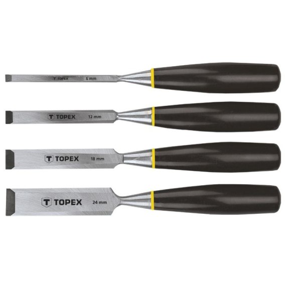 Zestaw dłut TOPEX (nr ref. 09A310) to praktyczny komplet dla każdego majsterkowicza. Cztery dłuta do obróbki drewna wykonane z wysokiej jakości stali narzędziowej. Posiadają ergonomiczne uchwyty wykonane z tworzywa sztucznego, które dobrze leżą w dłoni. W zestawie zawarto rozmiary, używane przy większości podstawowych prac. Marka TOPEX skierowana jest do majsterkowiczów.