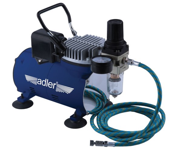 AD-4001 to tłokowy mini kompresor przeznaczony do zasilania aerografów w sprężone powietrze.