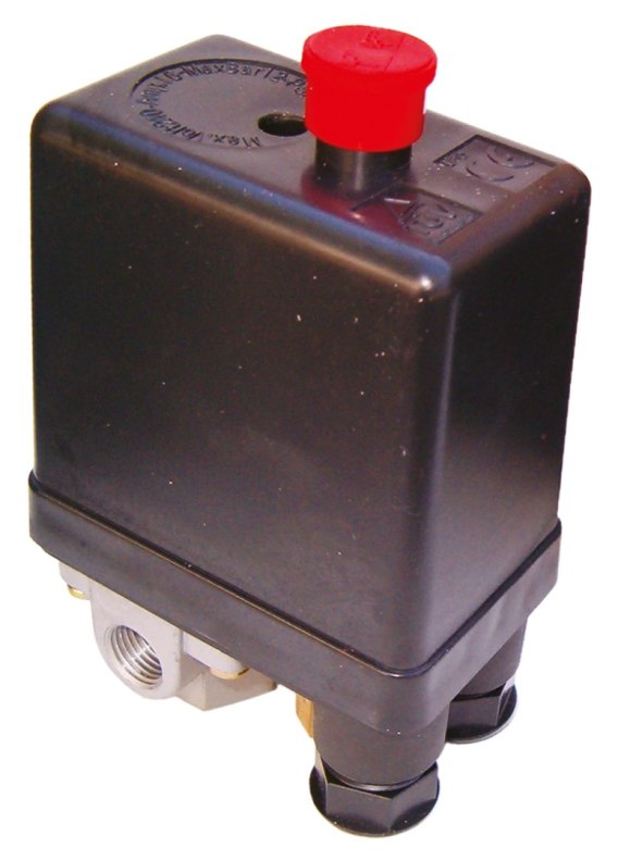 Są to bardzo ważne elementy każdej sprężarki powietrza. Sterują one pracą kompresora, odpowiednio ustawiając presostat ustawiamy parametry załączania i wyłączania pompy sprężarkowej zależnie od ciśnienia panującego w zbiorniku kompresora. Wyłączniki ciśnieniowe to urządzenia elektryczne zasilane jedno - 230V lub trzyfazowo - 400V w zależności od typu silnika danego modelu sprężarki.