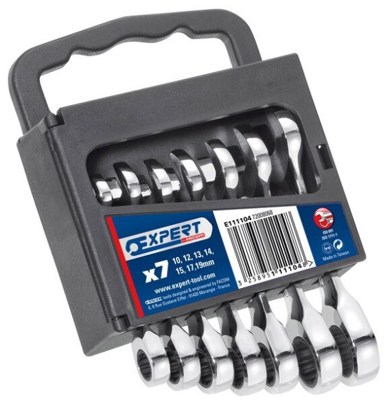 • ZESTAW KLUCZY PŁASKO-OCZKOWYCH, KRÓTKICH Z GRZECHOTKĄ, 7SZT
