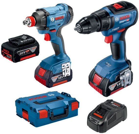 Zestaw elektronarzędzi 2szt. GDS 18V-300 Bosch 06019G5227 składa się z klucza udarowego i wiertarko-wkrętarki, dzięki którym operator wykona większość prac montażowych. W zestawie znajdują się także 3 akumulatory do natychmiastowego rozpoczęcia pracy.