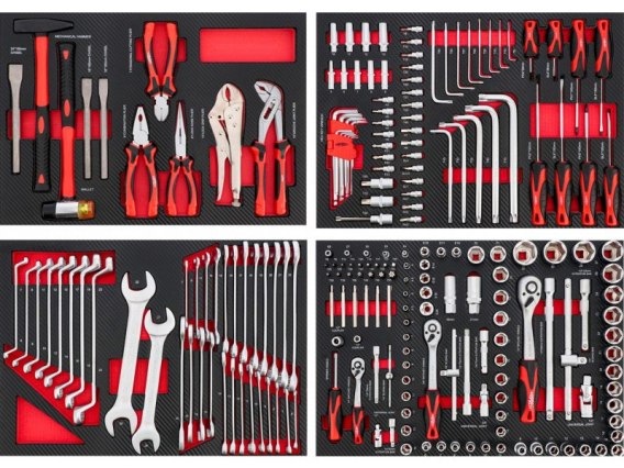 Pełen zestaw składa się z 4-modułów z łącznie 217 narzędziami. Profesjonalny zestaw narzędzi, odpowiedni zarówno dla warsztatów samochodowych jak i majsterkowiczów. Futerał modułów wykonany jest z wytrzymałej pianki pozwalającej utrzymać porządek wewnątrz wózka narzędziowego, która bardzo dobrze chroni narzędzia przed uszkodzeniami.