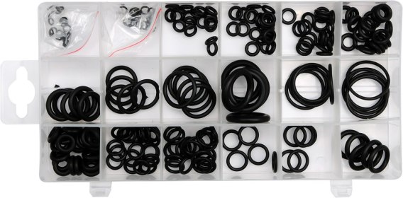 Praktyczny zestaw 225 O-ringów gumowych. Zawiera mix 18 różnych rozmiarów.
