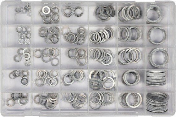 Zestaw 300 sztuk podkładek aluminiowych pod korki spustowe oleju.