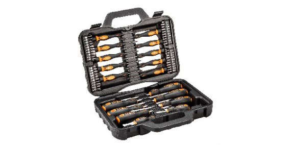 Zestaw wkrętaków i końcówek wkrętakowych NEO zawiera 58 wysokiej jakości elementów.
