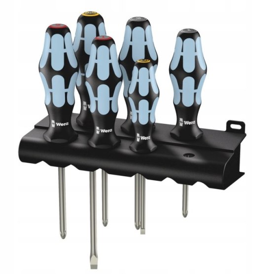 3334/3350/3355/6 Zestaw wkrętaków ze stali nierdzewnej + wieszak, 6 cz